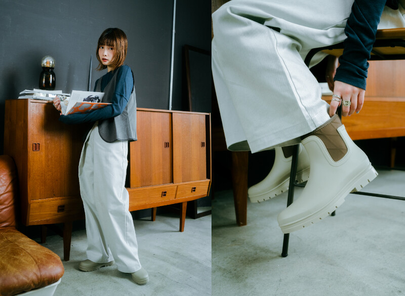 又湿又冷的台湾冬天最需要这双自带防水功能的NEOPRENE RAIN短靴,可可爱爱的圆润外观,加上深浅撞色的大地色调,实穿搭配性可说是满分!最让人想不到的是竟然可以跟KBF透肤层次感上衣、背心与打褶宽裤…配出一种自在惬意的中性混搭风,展现强大的造型支配能力。