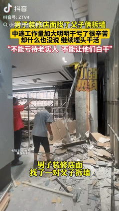 那天,老板请了附近的父子俩来拆墙,原本以为就是普通的砖墙,谈好了价钱——2000块,