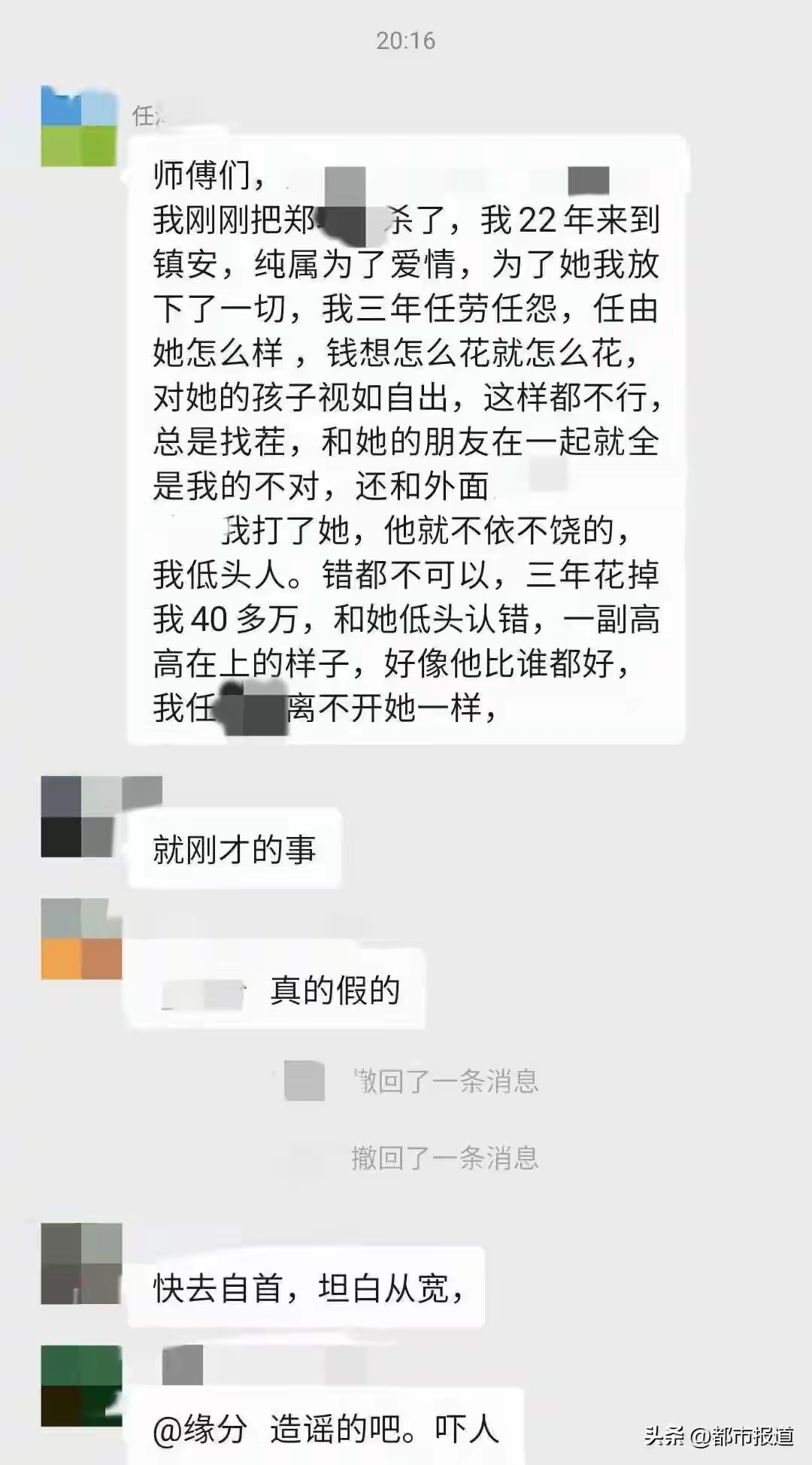9月17日晚,陕西商洛镇安县发生一起令人扼腕的刑事案件。涉案男子任某某在400多人的出租车交流群中发出消息,自称杀害了郑某某。他详细叙述了自己“为爱情三年来任劳任怨,花了40多万,对孩子视如己出却总被找茬”的委屈。
